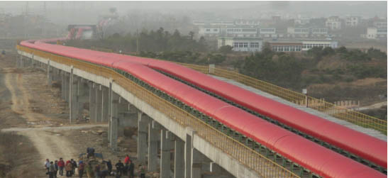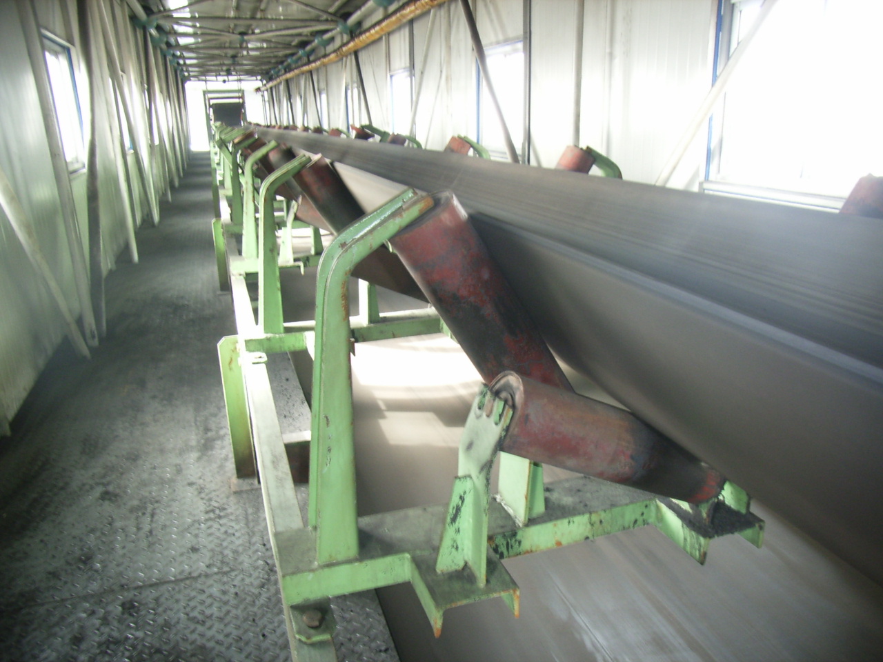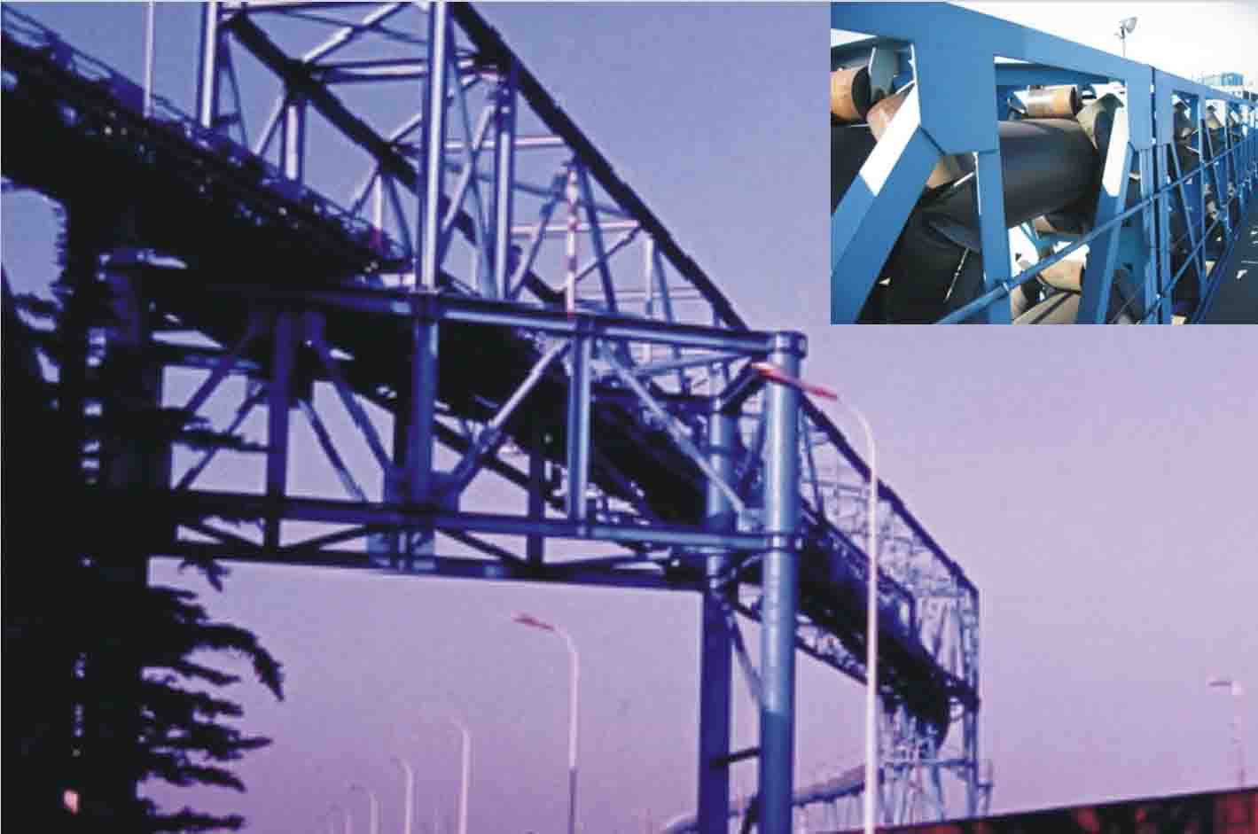 我公司所生產(chǎn)的帶式輸送機(jī),首先是運(yùn)行可靠,在許多需要連續(xù)運(yùn)行的重要的生產(chǎn)單位,如發(fā)電廠煤的輸送,鋼鐵廠和水泥廠散狀物料的輸送,以及港口內(nèi)船舶裝卸等均采用帶式輸送機(jī)。其特點(diǎn)動(dòng)力消耗低,使用過程中阻力小,對(duì)貨物的磨損和破壞均小,生產(chǎn)效率高。不僅在煤廠、鋼鐵廠和礦廠運(yùn)用輸送機(jī),還在小型隧道內(nèi)均可以使用,長度短則幾米,長可達(dá)10米以上,也可以架設(shè)在地面交通混亂和危險(xiǎn)地區(qū)的上空。如在一點(diǎn)或多點(diǎn)受料.也可以向多點(diǎn)或幾個(gè)區(qū)段卸料,需要時(shí),還能把各堆不同的物料進(jìn)行混合。