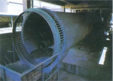 單筒冷卻機(jī)屬于回轉(zhuǎn)圓筒類設(shè)備,主要由支撐裝置、筒體部、傳動(dòng)裝置、頭尾密封罩、頭尾密封裝置等部分組成。單筒冷卻機(jī)的功能是使回轉(zhuǎn)窯產(chǎn)生的高溫物料經(jīng)過(guò)冷卻機(jī)冷卻到一定溫度,再進(jìn)行運(yùn)輸、貯藏和下一步的處理。根據(jù)設(shè)備物料、工藝、工況不同可分為風(fēng)冷冷卻機(jī)、水冷冷卻機(jī)、風(fēng)冷水冷混合冷卻機(jī)。