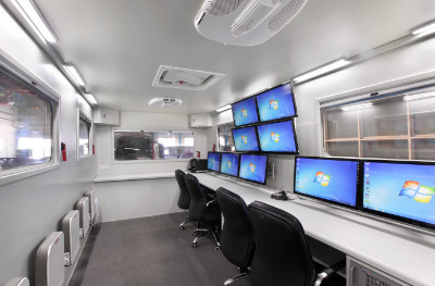 儀表車能夠?qū)ψ鳂I(yè)現(xiàn)場的所有壓裂裝備實現(xiàn)全過程監(jiān)控,具備集中控制,井場監(jiān)測,數(shù)據(jù)采集、分析、處理等功能,作業(yè)現(xiàn)場可實現(xiàn)無人值守;系統(tǒng)聯(lián)接方式可選用環(huán)型或星型等網(wǎng)絡(luò)拓撲結(jié)構(gòu),并設(shè)有標準以太網(wǎng)接口及多種通訊協(xié)議,可兼容控制多種品牌泵車、混砂車等設(shè)備;采用DVCommand(指揮系統(tǒng))及MPC(多泵控制系統(tǒng))控制與數(shù)據(jù)采集軟件,可靈活配置采集通道,滿足壓裂作業(yè)要求。通過與第三方軟件實時通訊,可在任意地點登錄網(wǎng)站遠程監(jiān)視作業(yè)情況;整車按照可靠性、維修性、保障性、安全性、測試性和環(huán)境適應(yīng)性“六性”設(shè)計,安全可靠舒適、便于操作使用。